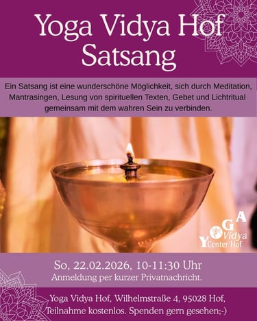 Yoga Vidya Hof lädt dich ein, durch Yoga, Meditation, Entspannung, Kirtan-Singen, Satsangs, Tanz und Breathwork tiefer bei dir selbst anzukommen und die Freude am Leben aus deinem Inneren heraus zu erfahren.